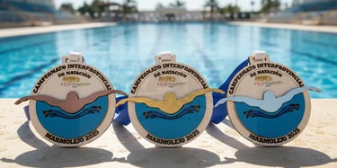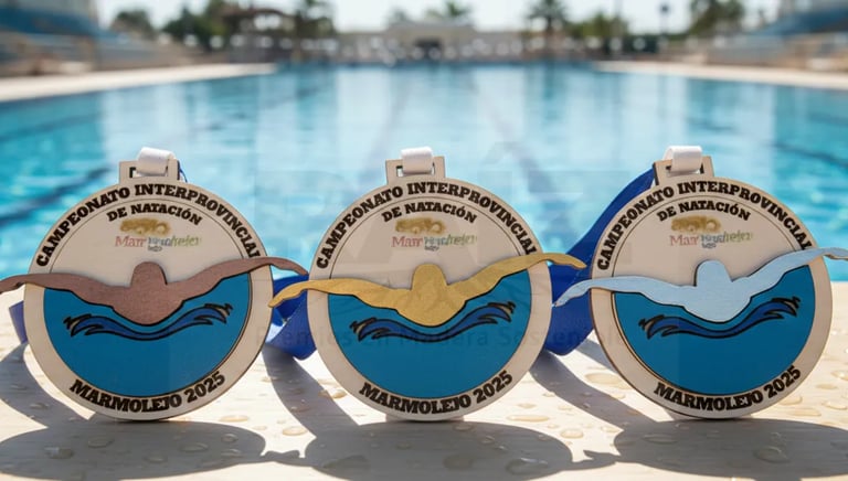 Medallas personalizadas en madera sostenible para eventos deportivos y actos municipales.